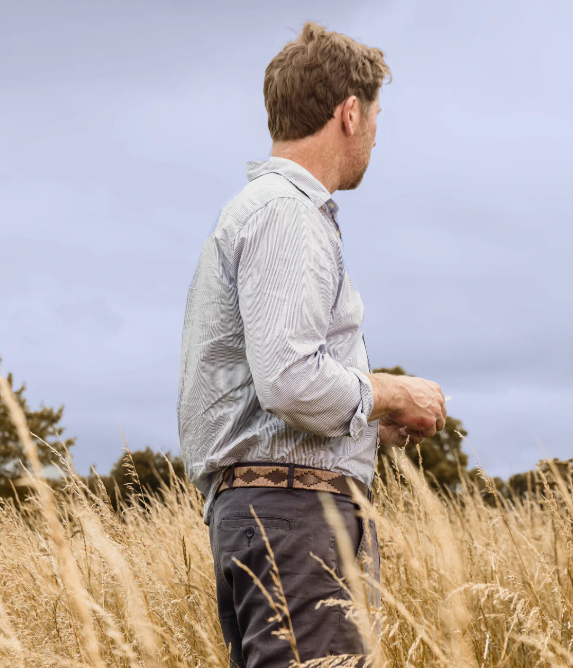 The timeless appeal of the Brown Bordado belt comes in the winning combination of bold brown hand stitching and a sumptuous, rich Havana brown leather. It is completed with a contemporary antique gold finished buckle and a diamond logo at the end of the belt.