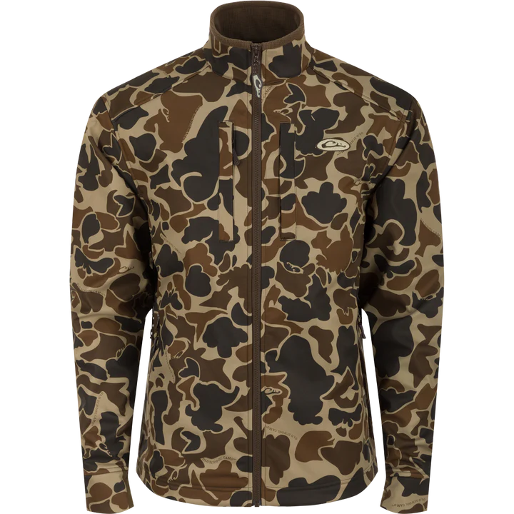 Keep the wind and cold at bay with our Drake Windproof Soft-Shell Jacket. Offered in our Exclusive Old School Camo and crafted from a 100% polyester outer shell and an internal 100% bonded grid fleece lining, this midweight 360 GSM jacket is windproof and water resistant, offering maximum protection, comfort, and convenience. It features two chest pockets, and two slash pockets perfect for storing your essentials. The waist drawcord and stretch cuffs add an adjustable fit for added versatility.