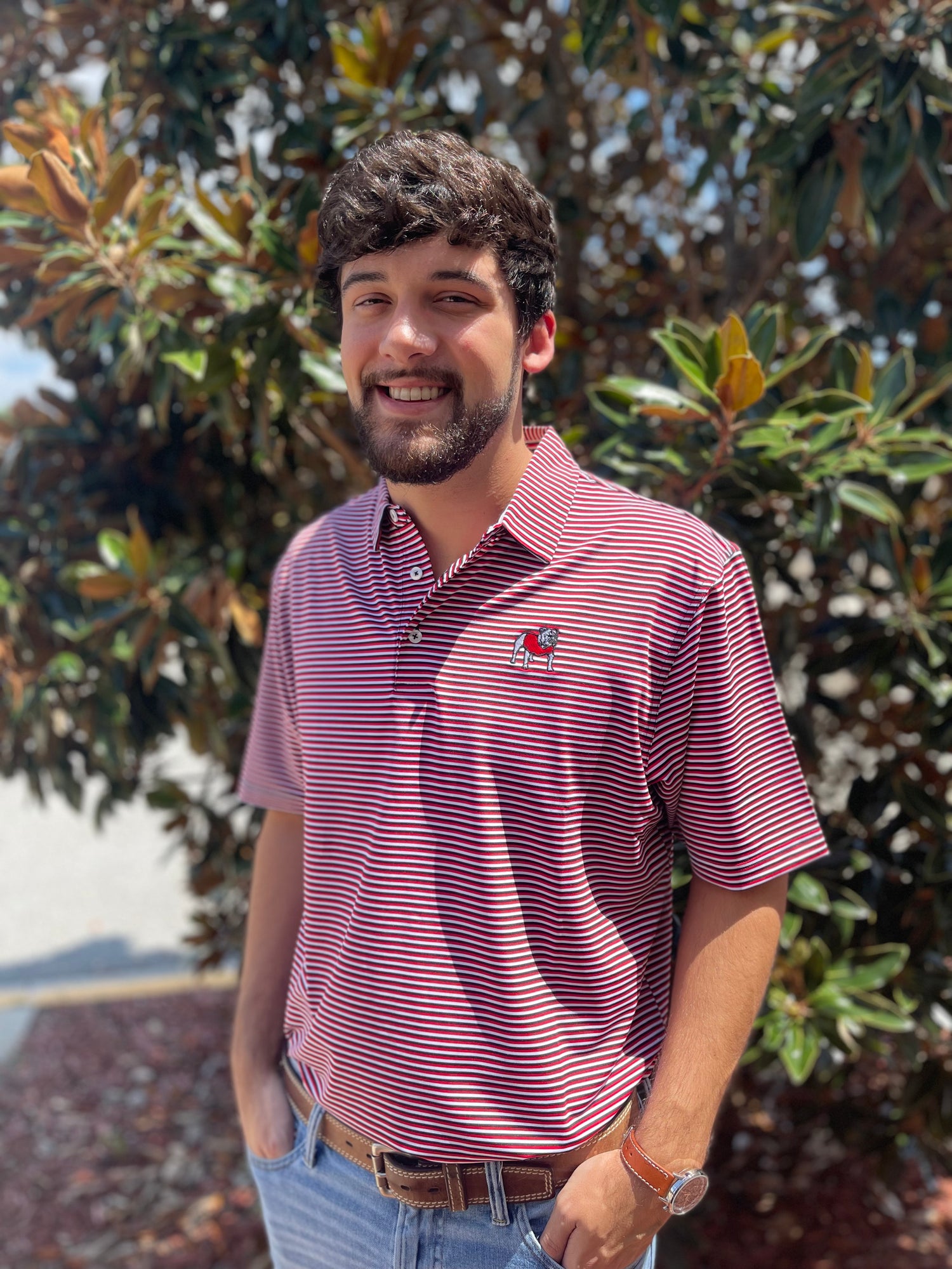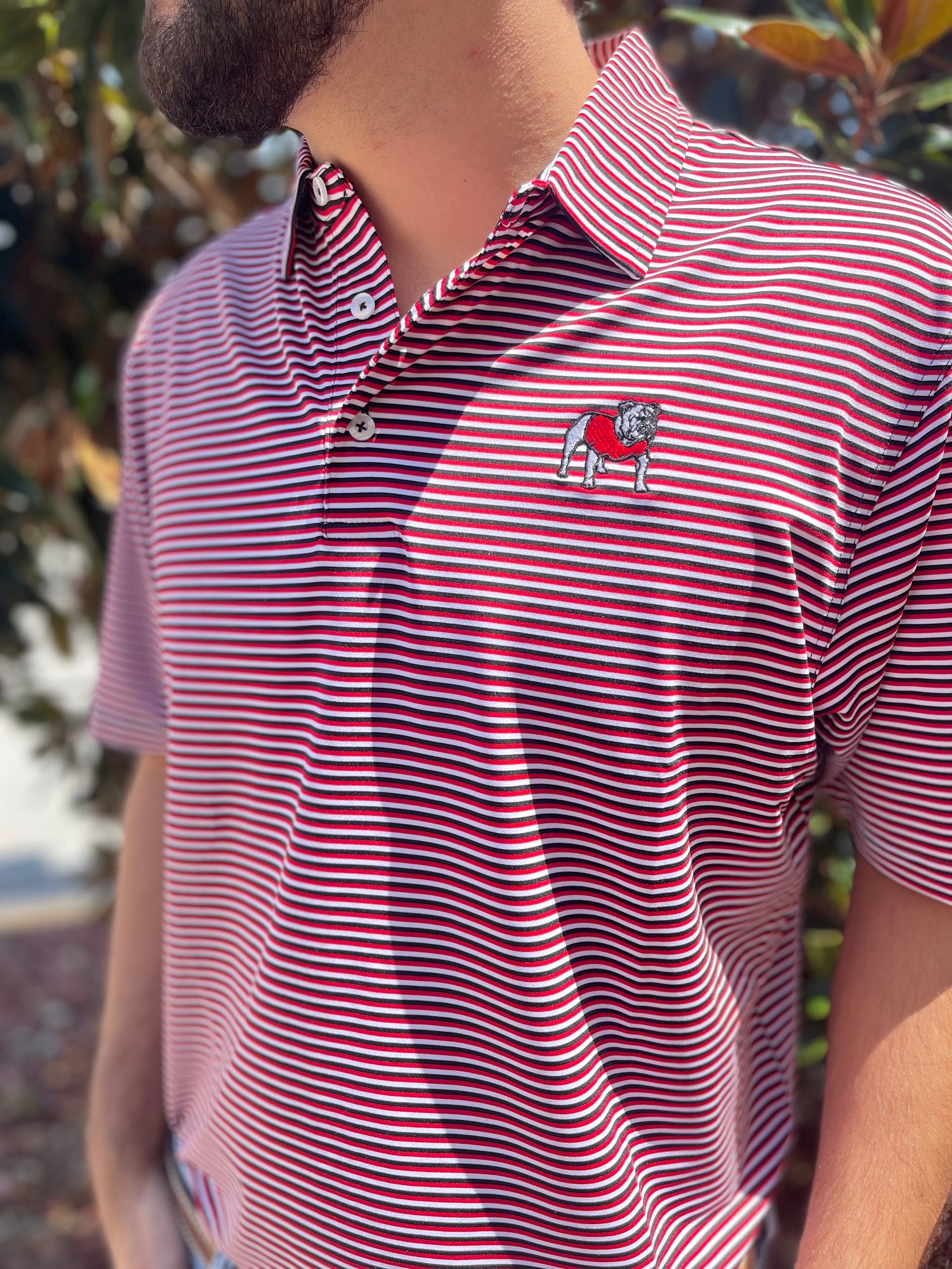 Dallas Wayne private label polo colored in Black, Red, and White.