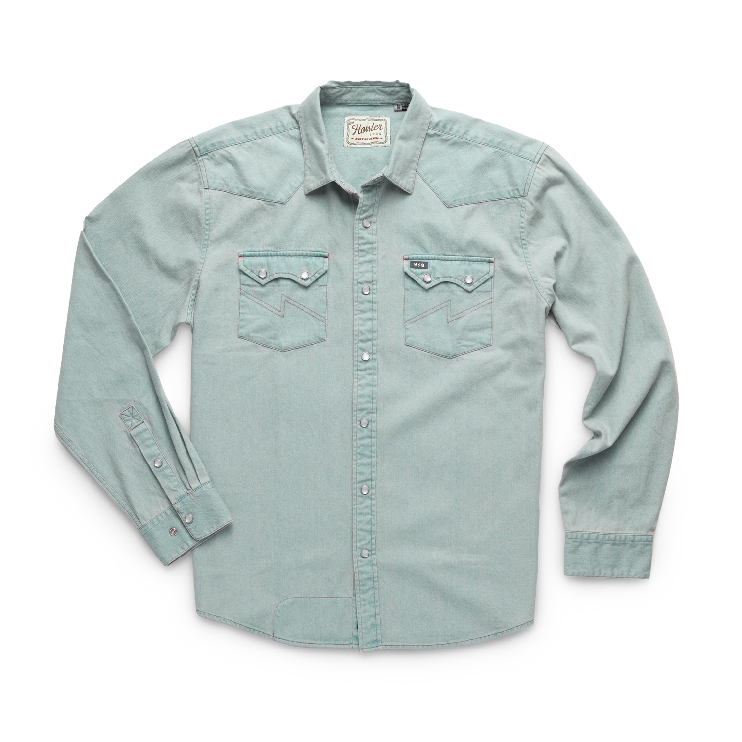 Our Dust Up Denim Snapshirts have been selling out arenas and kicking up dust for a minute now, and the act's gotten even stronger with a dialed in fit. These 100% midweight cotton denim toppers sell out quickly due to their rugged nature and versatile style. Get one before you get bucked.