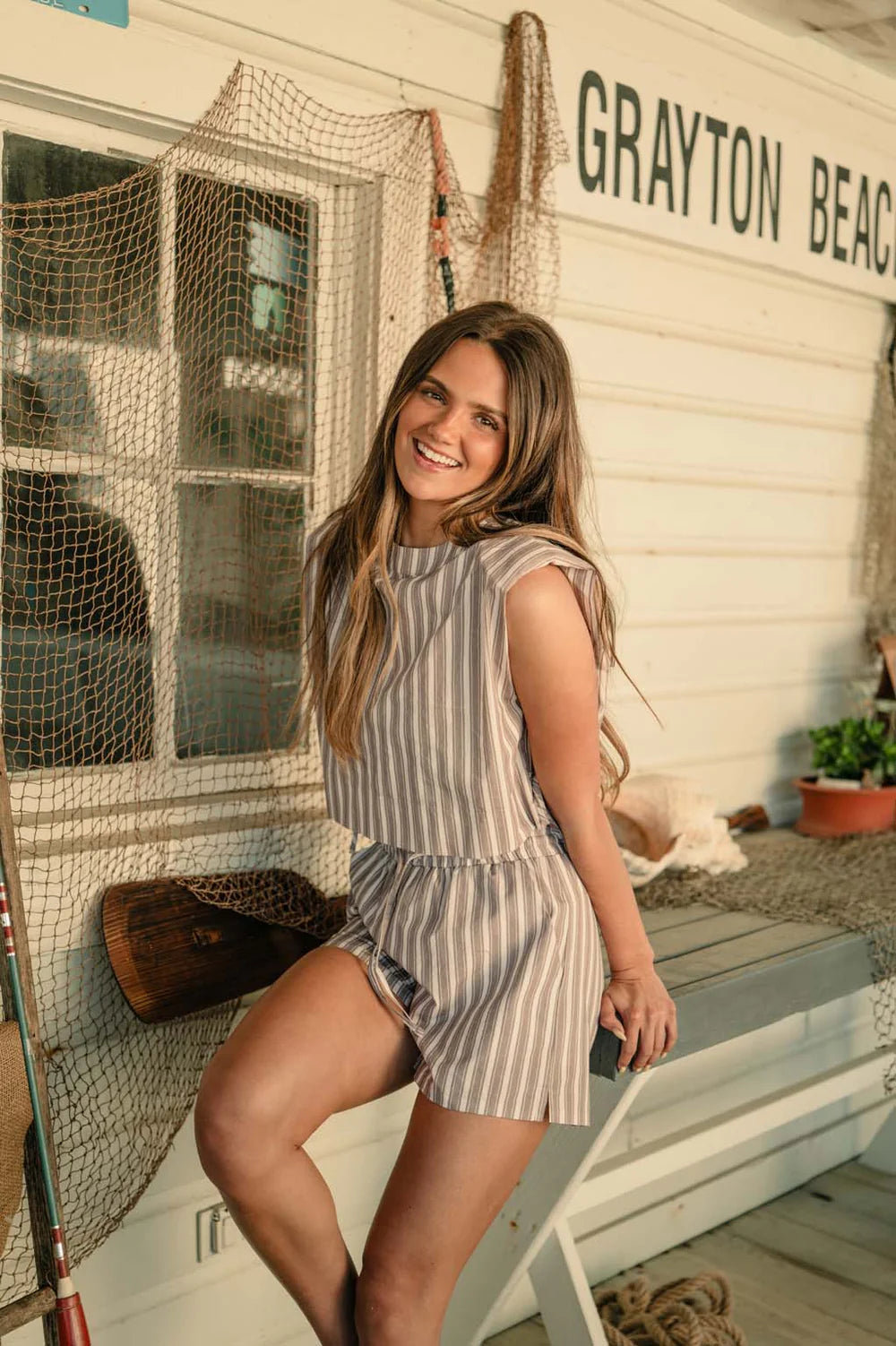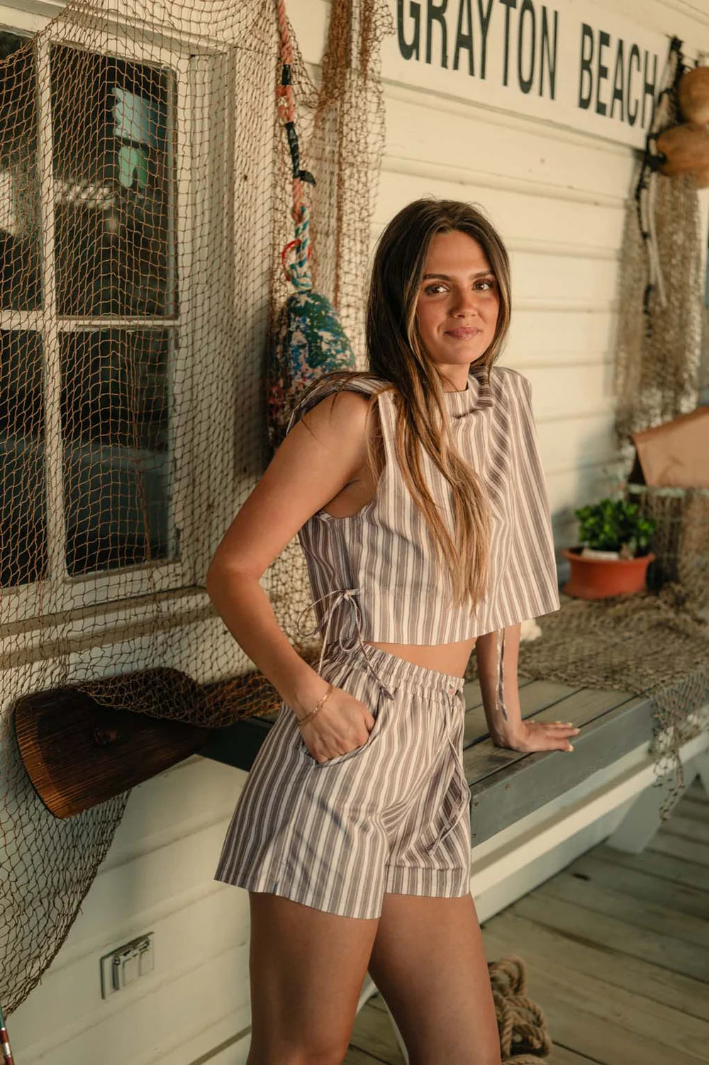 Laid-back meets all-American classic. The Grayton Boxer Shortfeatures a crisp stripe pattern, adjustable drawstring waist, and a custom Americana patch detail on the front. Designed for effortless days and easy styling, these boxers are perfect for pairing with our Grayton Tank, tossing over a swimsuit, or lounging in style. A nod to vintage athletic wear with a modern twist. These will be a staple this Summer!