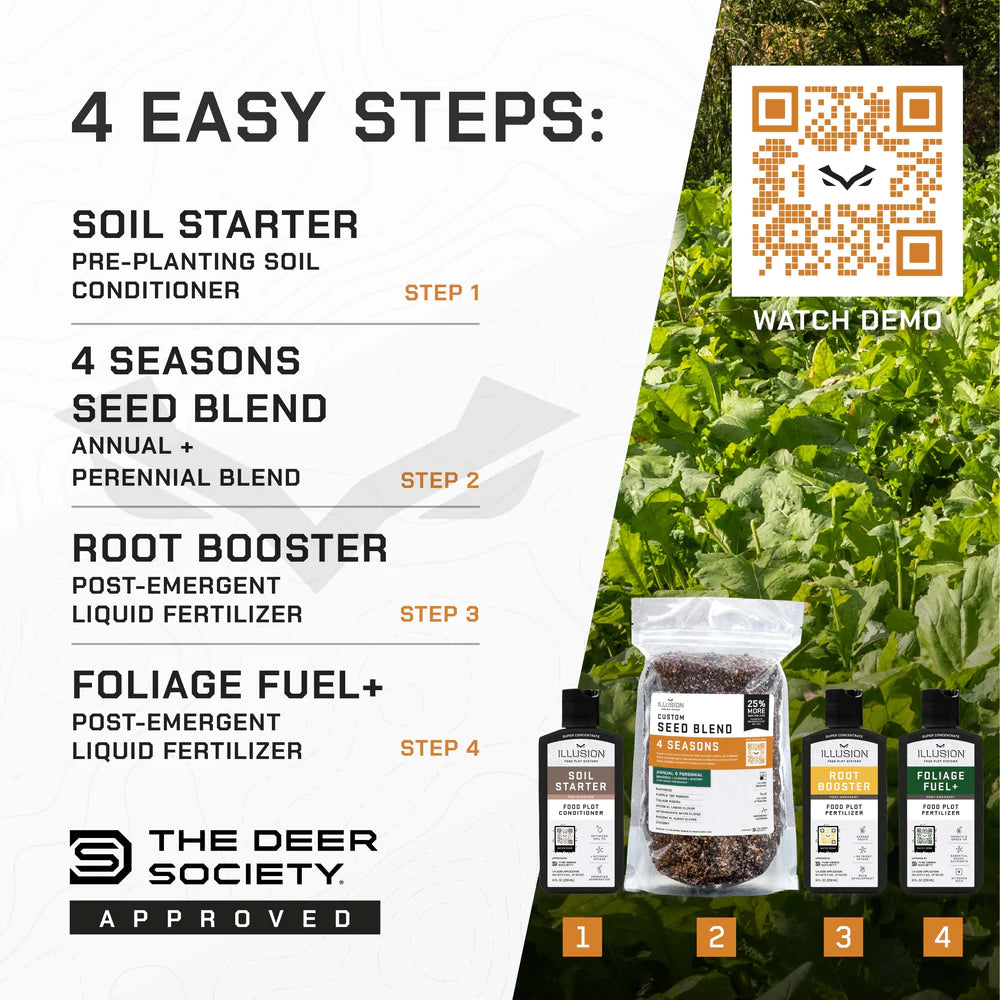 STEP 2: 4 Seasons (Annual & Perennial Seed Blend - 2.5lbs.): 4 Seasons uses a wide variety of plants to attract, nourish, and sustain deer for all four seasons of the year.