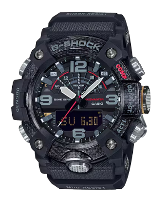 This is a model from the G-Shock Mudmaster Series, designed for use in extreme environments scattered with rubble, dirt and debris, and uses carbon materials. The use of high rigidity carbon on the case keeps damage and deformation at bay, and ensures a high level of airtightness and shock resistance. This model also features a construction that protects against the invasion of mud, a stainless steel panel back, and a back cover made of shock-resistant fine resin embedded with glass fibers, giving it a high level of resistance to dust and mud. The bezel also uses three layers of fine resin with carbon fiber inserts and is designed to resemble a portable gasoline can that could be found on off-road vehicles. Function-wise, this model comes with compass, altimeter/barometer, temperature reader and pedometer. In addition to being able to easily correct the time using the dedicated CASIO WATCHES app, there are lots of other useful features including the Mission Log feature, which automatically records in the app altitude data obtained from the watch and route data obtained by your smartphone. This is a toughness watch that supports you in taking quick decisions and accurate actions.