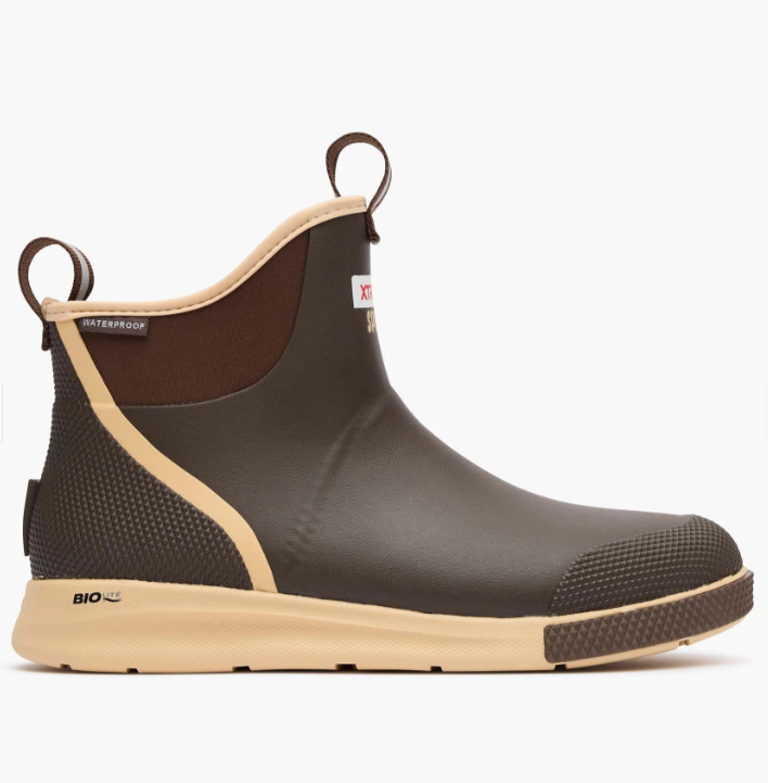 The Ankle Deck Boot Sport provides next level comfort and slip-resistance to the iconic XTRATUF ADB. The ADB Sport is 30% lighter than other 6-inch boots in this category and is built with on a high-performance BioLite foam outsole which is ultra-durable and slip-resistant and still non-marking. This boot delivers the comfort and agility of a sneaker with long cushion life and high energy return, all while offering the same traction benefits of a full rubber boot. Now available in the iconic XTRATUF brown and tan colorway.