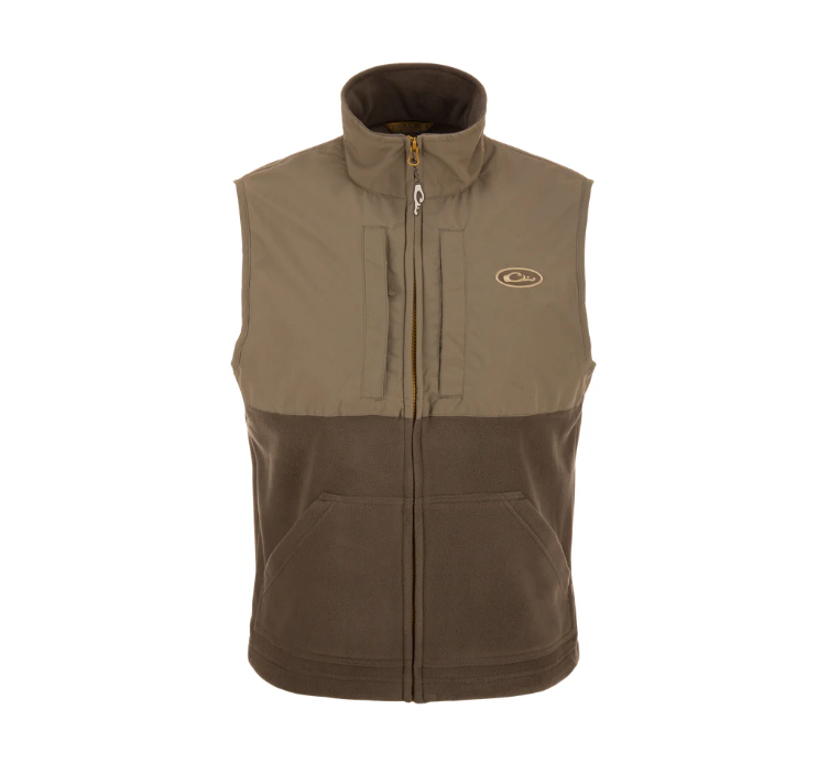 The best of all worlds, the Drake Eqwader vest combines the need for mid-layer, core insulation, freedom of movement in the arms, waterproof protection in the shoulders, and moisture-wicking, ultra-breathable 190-gram polyester fleece in the lower torso. With Magnattach™ left chest and vertical zippered right chest pockets, you can easily and securely store your cell phone for quick access as well as keep your duck calls warm and ready-to-go when the birds start working.