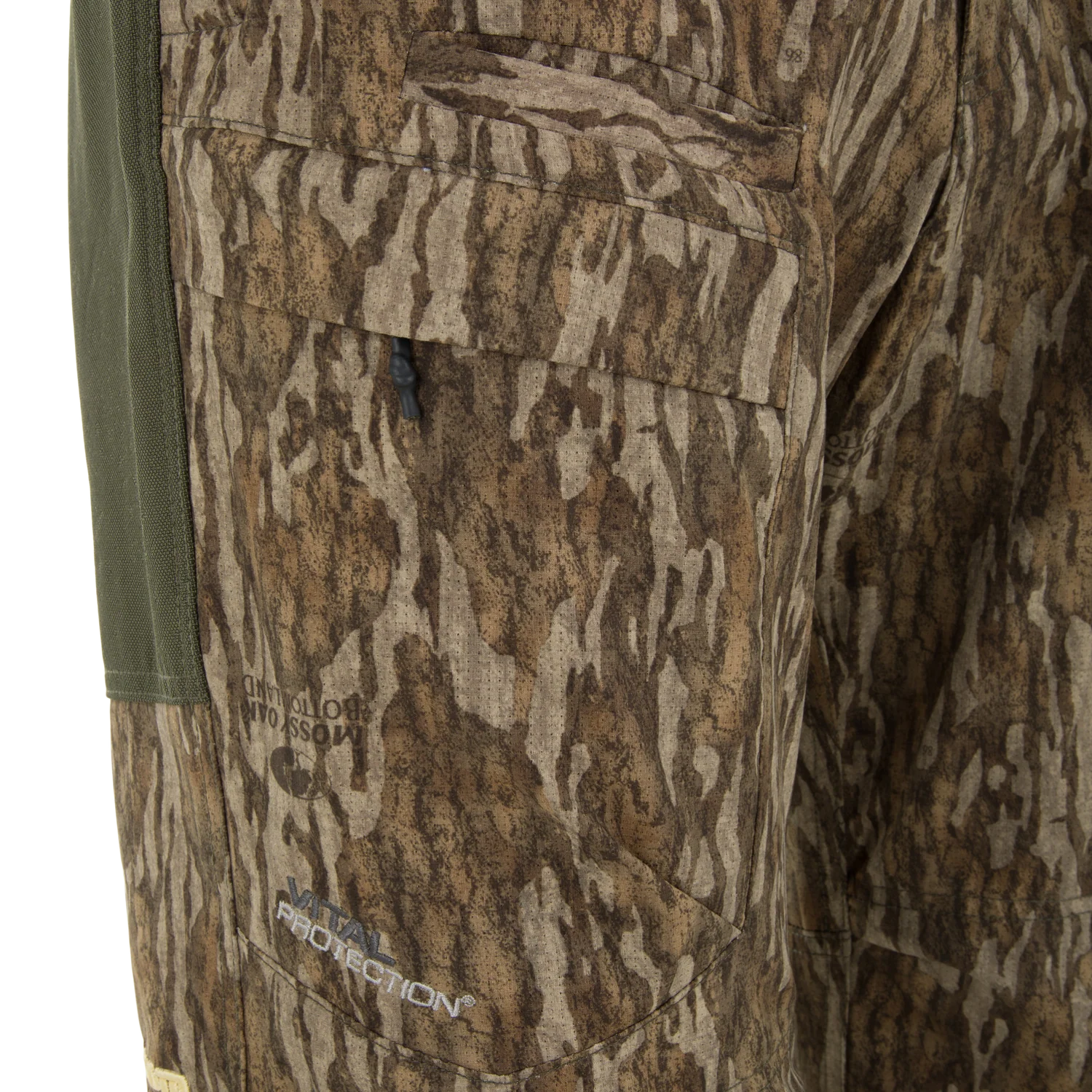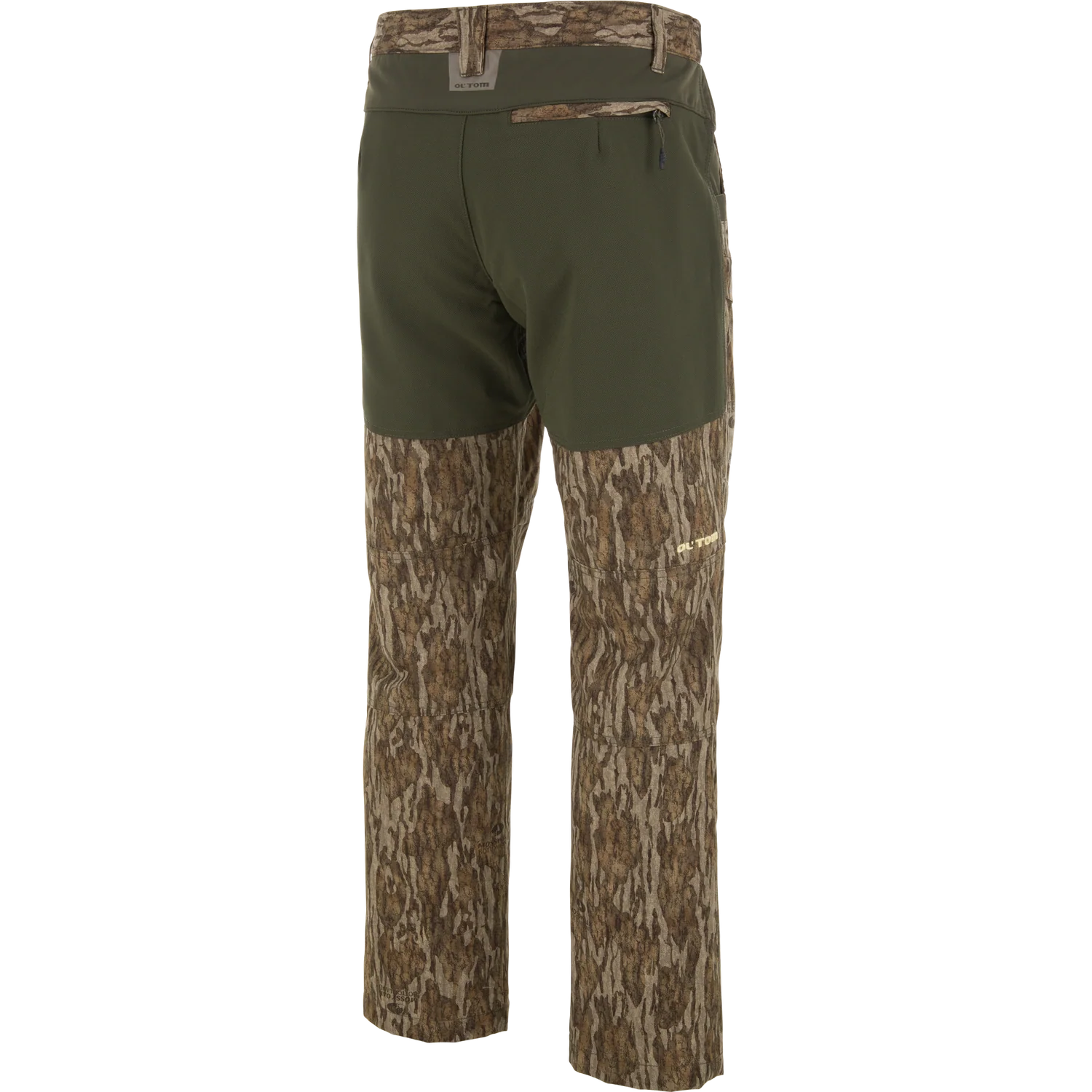 The Ol' Tom Early Bird SWT Pant is engineered for those who demand performance without compromise. Constructed from 5 oz, 170 GSM 100% polyester with advanced SWT stretch technology, these pants provide superior breathability, durability, and a quiet profile essential for early-season hunts. Vital Protection® insect repellent technology guards against mosquitoes, ticks, ants, flies, chiggers, and midges—critical protection during peak bug season. DWR treatment and water-resistant double-layer seat reinforcement shield you from moisture and weather. The design prioritizes mobility and comfort with side stretch hip panels, stretch seat yoke, crotch gusset, and stretch comfort waistband. Practical features include stretch waist pockets for seated access, two large low-profile cargo pockets, a D30 P12 knee pad-compatible inner pocket, and a quick drop-in pocket for your phone or gear. Built for serious hunters.