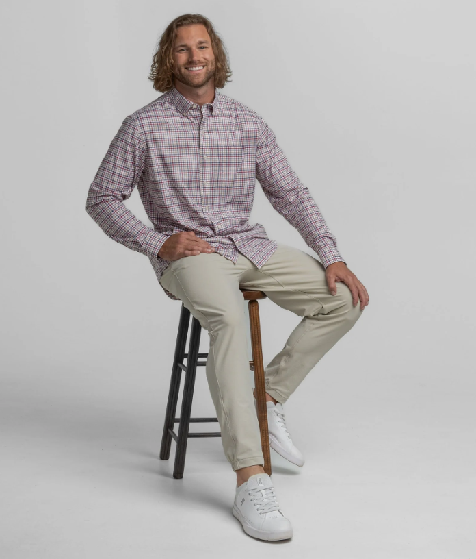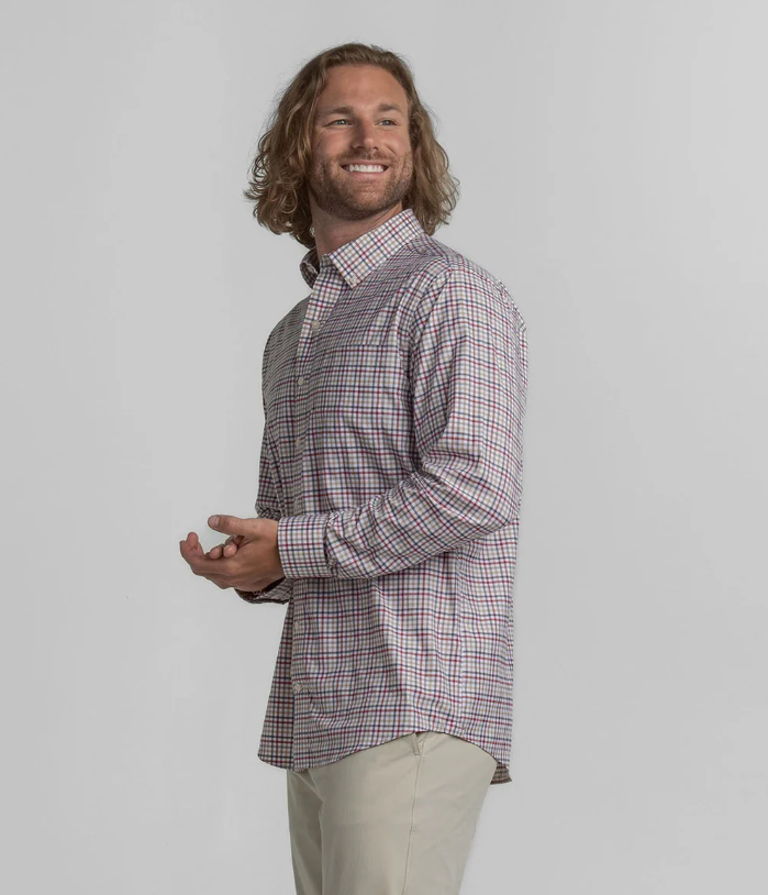 The Samford Check Long Sleeve reinvents the timeless button-down with performance features built for Southern fall weather. Lightweight, breathable, and finished with a silky-soft hand feel, this shirt delivers the polished look of a woven with the comfort of your favorite tee.