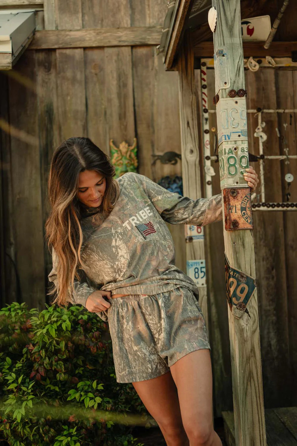 Meet the Base Camp Boxer Short - Americana Edition, now featuring a signature USA Tribe Kelley boxer tag for a patriotic touch! These shorts are the definition of comfort and effortless style—available in Mossy Oak Break-Up®! Designed for more than just lounging, these ultra-soft, breathable boxers are perfect for slow mornings, laid-back days, or even stepping out in style. Pair them with the USA Base Camp Long Sleeve for a cozy matching set, or style them with your favorite tee and sneakers for an effortlessly cool look. Whether you're lounging at home or running errands, these are the go-to shorts you’ll never want to take off!