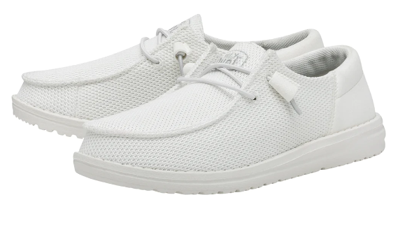 They Hey Dude Wendy Funk Mono White is perfect for spring and summer. It's monochrome design, gives this shoe a fresh, clean look, like none before. Stretchy Knit, cushy foam insole, ultralight outsole, means all day comfort without ever lacking style!