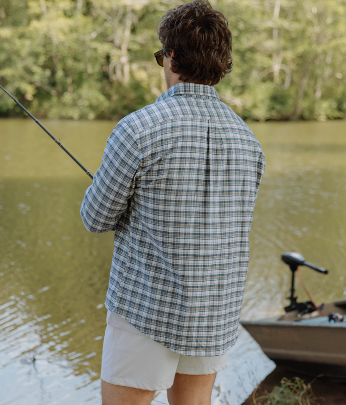 Designed with a non-boxy, modern fit, this shirt features a button-down collar, mitered cuffs, and a front chest pocket with button closure for a clean, functional finish. Back pleats add range of motion, while embroidered side gussets give it a subtle touch of signature detail. Whether you’re pairing it with jeans, shorts, or boots, it’s ready for fireside hangs, tailgates, or weekend getaways.