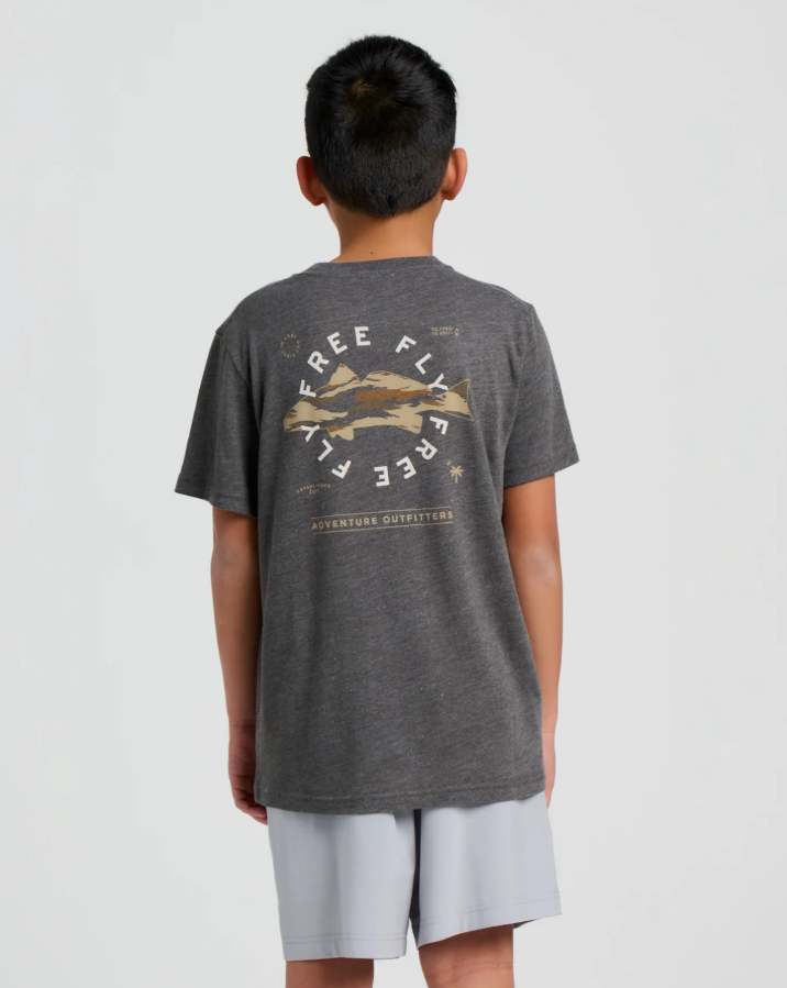 We outfitted this tee with our favorite local marsh critter, in a camo pattern inspired by the river linking South Carolina’s capital city to the largest protected wilderness in the state. The Youth Camo Redfish Tee has that same soft and worn-in feel of that favorite tee they just outgrew, thanks to an ultra-soft, tri-blend construction.