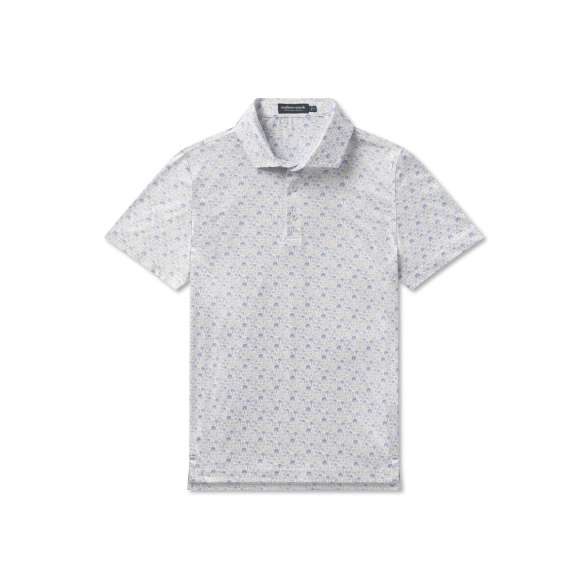 Lightweight and comfortable, our Youth Flyline Performance Polo - Summertime Blues features a beachy palm tree micro print, capturing the relaxed vibe of swaying palms in the wind. Made with stretchy, moisture-wicking fabric, it keeps your child cool and comfortable during fun outdoor activities. Perfect for warm weather, this polo blends style and performance for a laid-back, active lifestyle.