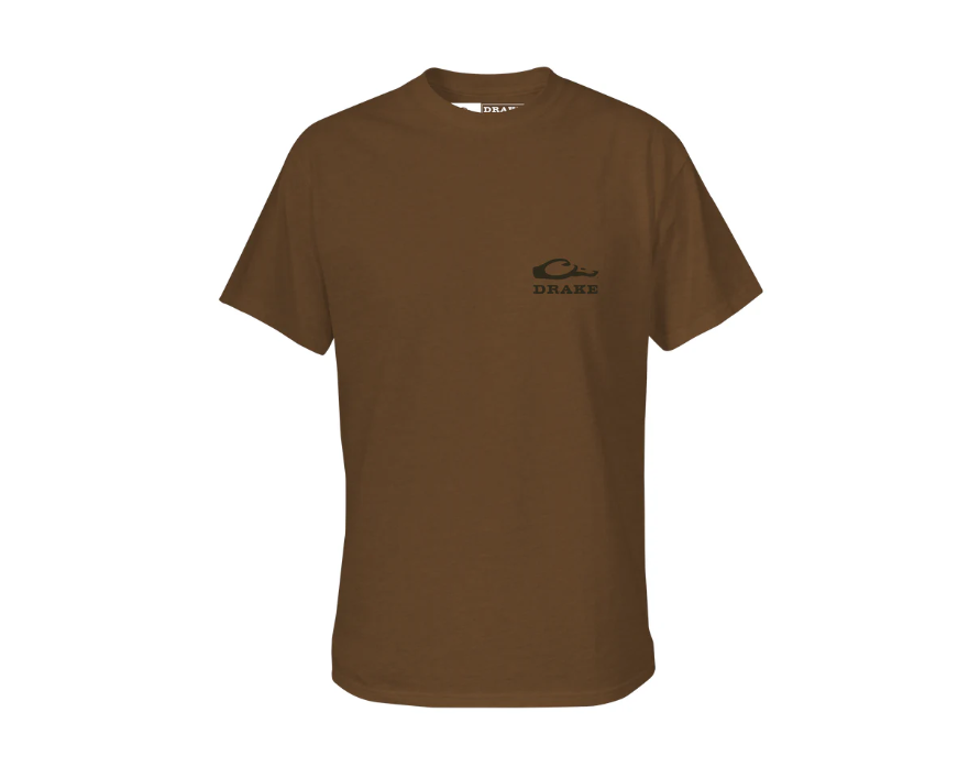 The youth version of the Drake Waterfowl Graphic Tee is constructed with a 60% cotton and 40% polyester blend which supplies softness and comfort. The Drake OSL has the Drake logo on the front and a Yellow Lab in an Old School Sweatshirt graphic on the back, from our Dogs of Drake Series of back graphic tees.