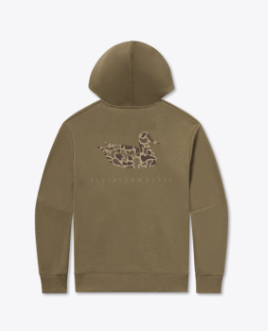 Our best selling camo duck design is now available on a hoodie! Our Youth Surfside Hoodie - Duck Originals is crafted from a soft cotton blend and features a cozy kangaroo pocket on front. This lightweight hoodie has a terry-cloth lining for a comfortable fit making it perfect for layering with any of our youth pocket tees!